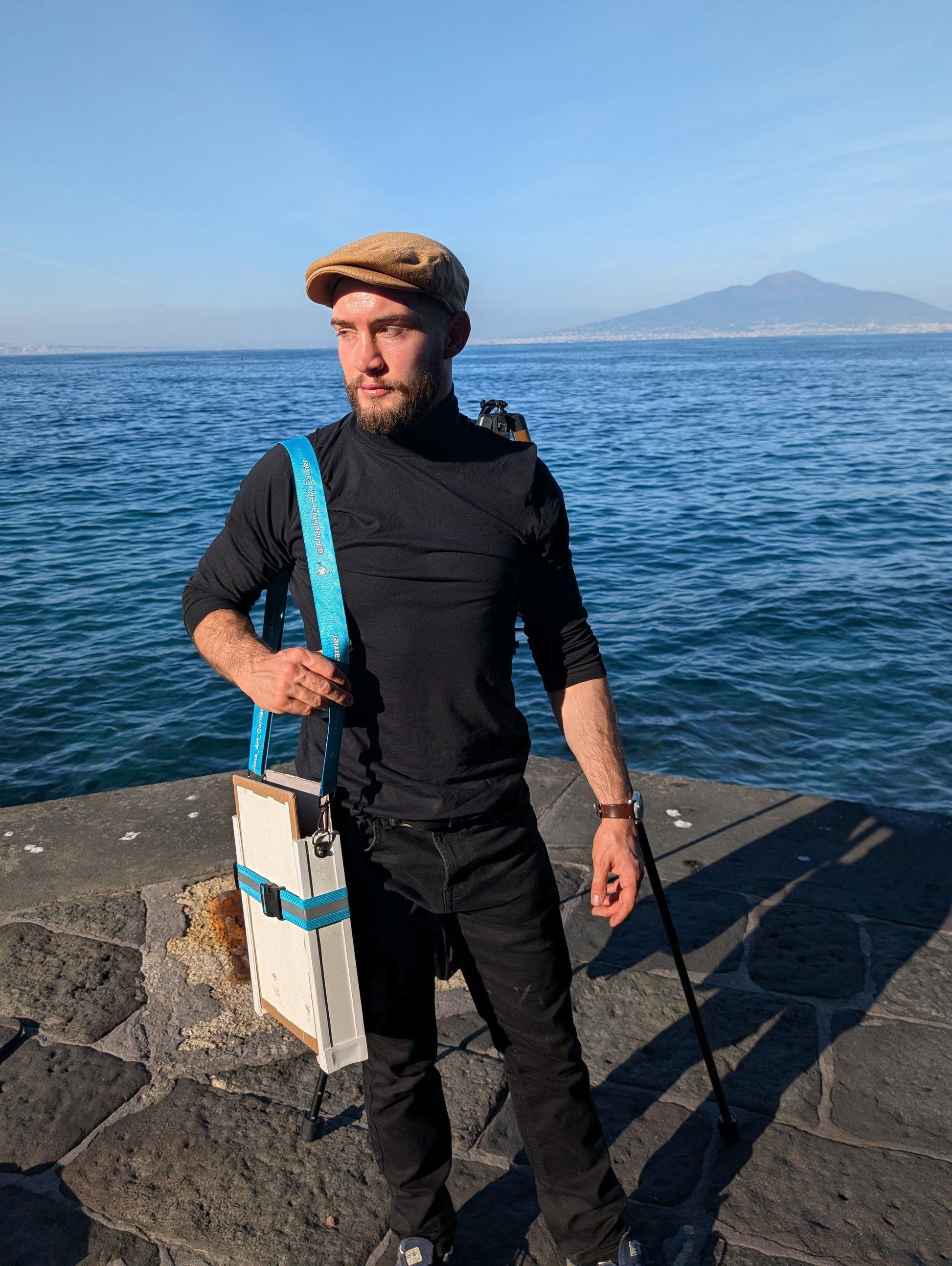 Adjustable shoulder strap and adjustable elasticated strap for Allaprima Art Carriers.